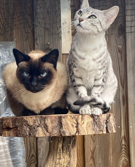Bijou hebben we in december 2024 opgehaald in Duitsland bij Annette Jünger. Bijou is een kitten uit hele goede lijnen en we zijn Annette ontzettend dankbaar voor dit prachtige kitten. Ze heeft een band met Nienke en Simba alsof het nooit anders is geweest. Simba en Nienke zijn eigenlijk al te oud om zoveel te spelen met Bijou, maar desondanks hebben ze een hele goede band met z'n drietjes, ze slapen, spelen en 'vechten' samen, maar ze zullen elkaar nooit pijn doen. Gelukkig voor de oudjes, komt er binnenkort, als alles goed gaat, een nieuw Egyptische Mau kitten bij. Dan kan Bijou daar haar energie aan kwijt. Ze kan zich ook ontzettend vermaken in onze afgeschermde tuin met het loeren op vogeltjes, vliegen vangen en kijken wat er bij de buren in de tuin gebeurt. Als ze buiten is en ik roep haar, dan komt ze meteen aangerend, zo schattig. Bijou is ontzettend lief, ze begint al te spinnen zodra ik haar oppak. We hopen eind dit jaar kittens van Bijou te krijgen, ik kijk er ontzettend naar uit.